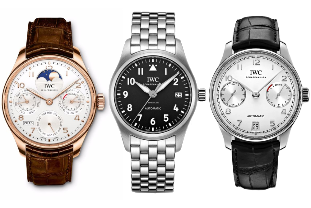 Black dials with contrasting luminescent displays is a minimalist's dream. Numerals stand out against the matte-black dial background. Finally, the Pilot's Collection features the white triangular index at "12 o'clock" for pilots to catch the time at a glance.